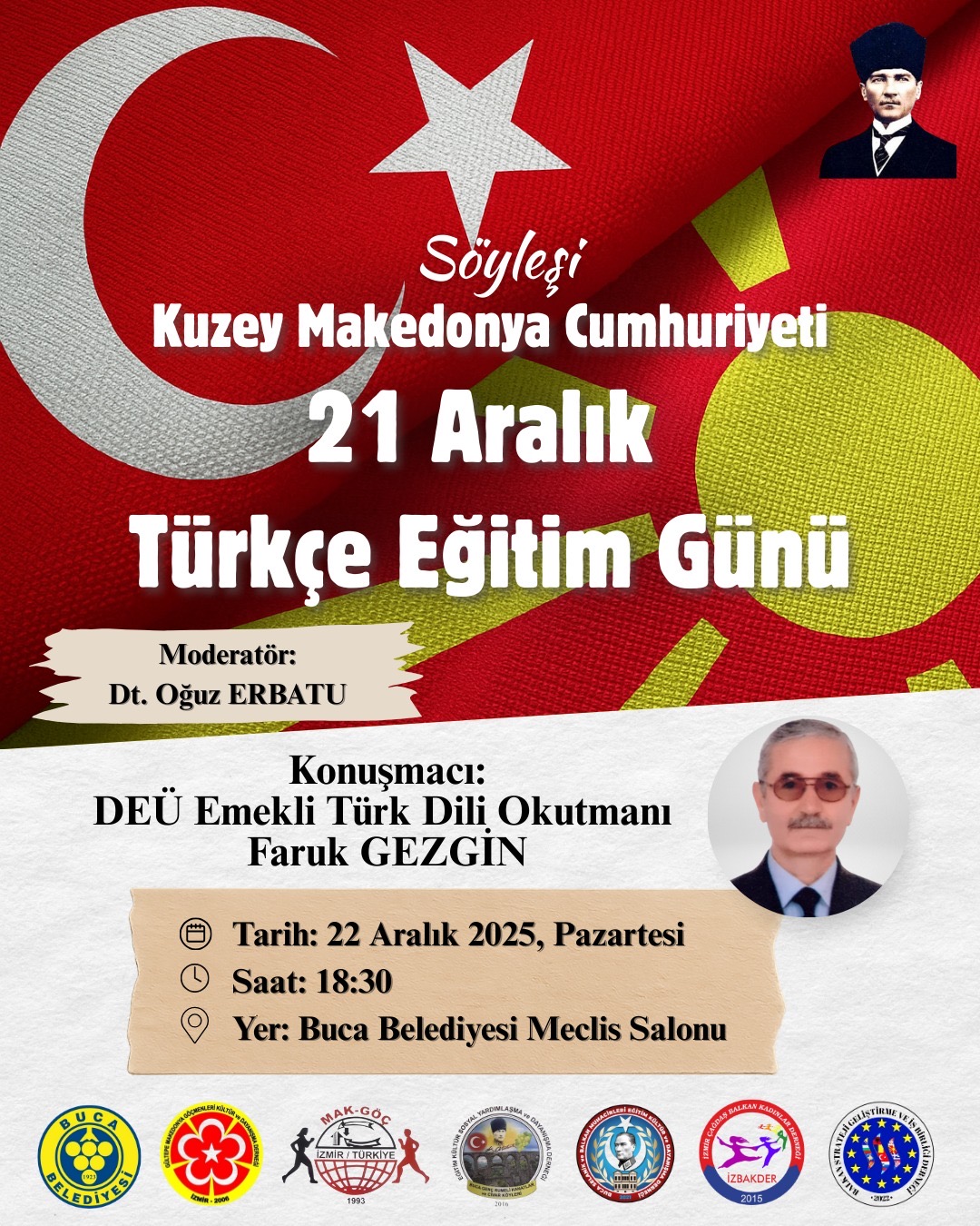 Kuzey Makedonya Cumhuriyeti vatandaşı Türk halkının millî günü olan “21 Aralık Türkçe Eğitim Günü”, 22 Aralık 2025 Pazartesi günü İzmir’in Buca ilçesinde düzenlenecek bir söyleşi etkinliğiyle kutlanacak.