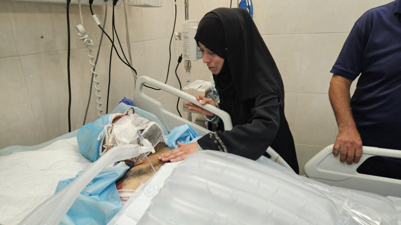 Katil İsrail'in 9 çocuğunun ölümüne neden olan hava saldırısında yaralanan baba Hamdi en-Neccar Neccar, işgalci İsrail güçlerinin Han Yunus'taki evine düzenlediği bombalı saldırıda ağır yaralandı.