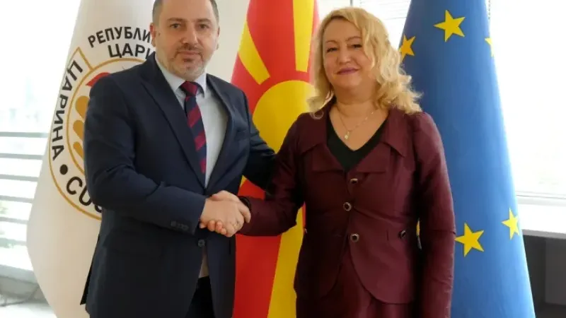 Bugün düzenlenen törende, Gümrük İdaresi Müdürü Boban Nikolovski ile Merkezi Sicil Müdürlüğü Müdürü Anita Stamnova, Elektronik Ortamda Belgelerin İş Birliği ve Değişimine İlişkin Anlaşmayı resmen imzaladılar.