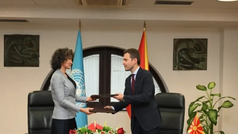 Kuzey Makedonya Dışişleri ve Dış Ticaret Bakanı Timço Mucunski ve Birleşmiş Milletler (BM) Kuzey Makedonya Koordinatörü Rita Columbia, ülkedeki BM kuruluşlarının önümüzdeki beş yıl boyunca izleyeceği yolu belirleyen stratejik bir belge olan "Birleşmiş Milletler 2026-2030 İş Birliği Çerçevesi"ni imzaladı.
