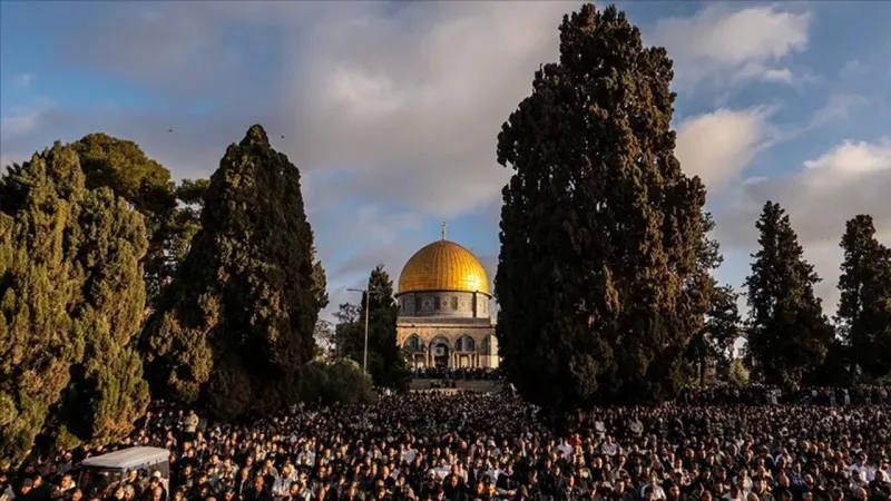İşgal altındaki Doğu Kudüs'teki Mescid-i Aksa'da, İsrail'in kısıtlamaları altında 120 bin Müslüman bayram namazını eda etti.