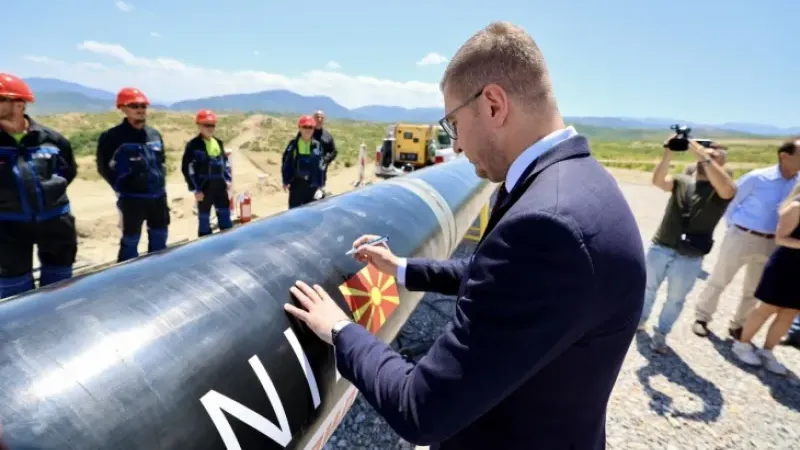 Başbakan Hristiyan Mickoski, bugün Yunanistan ile gaz bağlantı hattının inşasının başlangıcında yaptığı açıklamada, Kuzey Makedonya'nın komşularının gaz boru hatlarına bağlanarak bölgesel bir enerji kavşağı haline geleceğini duyurdu.