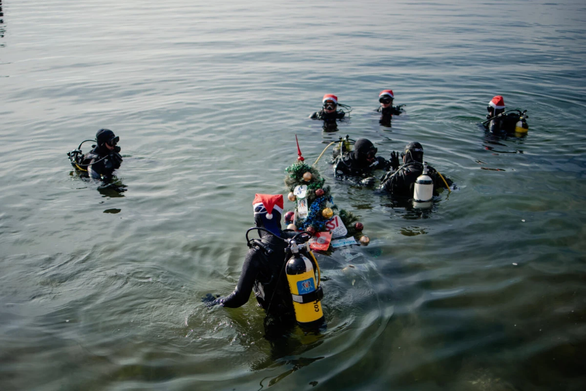Kemikler Körfezi - Ohri Gölü Su Müzesi'nde, geleneksel sualtı yeni yağacı yeniden yerini aldı. Bu sıra dışı bayram etkinliği 20 yılı aşkın bir süredir düzenleniyor ve yeni yıl ve Noel kutlamalarının sembolik başlangıcını işaret ediyor.