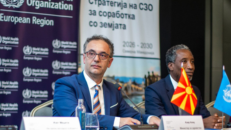 Kuzey Makedonya’nın 2026-2030 yılları arasındaki Dünya Sağlık Örgütü (DSÖ) ile İş Birliği Stratejisi, bugün düzenlenen bir tanıtım etkinliğiyle kamuoyuna sunuldu. Etkinliğe, Sağlık Bakanı Azir Aliu, Eğitim ve Bilim Bakanı Vesna Yanevska, Sosyal Politika, Demografi ve Gençlik Bakanı Fatmir Limani, DSÖ temsilcisi Dr. Akim Ali, BM Koordinatörü Rita Columbia ve UNICEF’ten Leslie Miller katıldı.