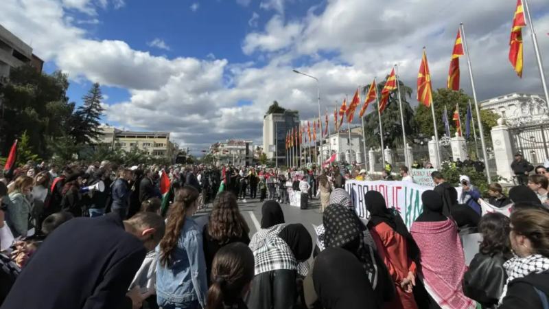 “Herkes Filistin İçin” girişimi tarafından organize edilen yürüyüşe yüzlerce vatandaş katıldı. Katılımcılar, “Barış Senfonisi” anıtı önünde toplanarak, Kuzey Makedonya Cumhuriyeti Hükümeti binasına doğru yürüdü.