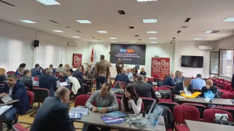 Yunanistan ve Kuzey Makedonya’dan 60’tan fazla şirket, ekonomik iş birliğini derinleştirmeyi amaçlayan üst düzey İş Forumu için bugün Kuzey Makedonya Ekonomi Odası’nda bir araya geldi.